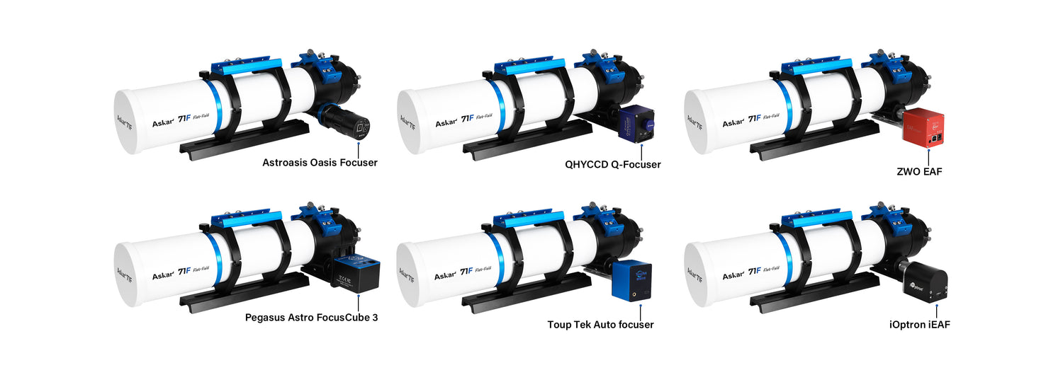 Le Askar 60F est un astrographe ultra-compact à champ plat, conçu pour offrir une performance optique élevée en astrophotographie sans nécessiter de correcteur de champ supplémentaire. Il combine une ouverture de 60 mm et une longueur focale de 408 mm (ratio f/6.8), avec une optique quadruplet Petzval air-espacé incluant un élément ED, capable de couvrir un cercle image de 44 mm (plein format). Conçu pour la portabilité, il est facile à transporter et à installer.