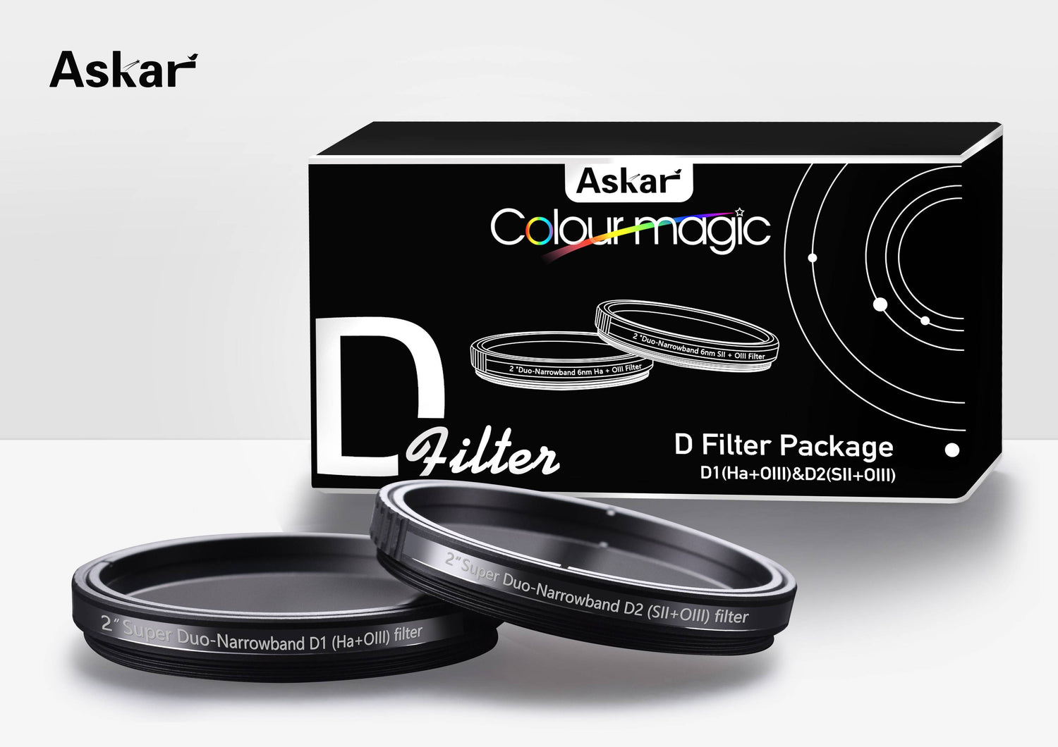 Le Colour Magic Super D est un ensemble de deux filtres duo-narrowband conçu pour l’astrophotographie avec caméras couleur. Le pack combine un filtre D1 (Hα + OIII) et un filtre D2 (SII + OIII), permettant de réaliser facilement en une seule prise les palettes d’imagerie SHO, sans avoir besoin d’une caméra monochrome ou de plusieurs filtres individuels.